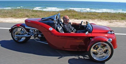 Канадская компания Campagna хорошо известна фанатам скорости благодаря трициклу T-REX, оснащаемому двигателем Kawasaki® 1400 cc мощностью 197 л.с.. Недавно в линейке компани и появился ещё один трицикл, оснащенный двигателем Harley- Davidson® Liquid-cooled Revolution® 60° V-Twin мощностью в 122 л.с., специально для любителей настоящей американской мощи, звука и ощущений. Кроме нового двигателя, V13 R получил и новый кузов, если так можно назвать несколько кусков пластика, навешенных на раму из стальных труб. Силовая установка работает в паре с пятиступенчатой секвентальной коробкой передач, задний ход имеется. О динамических характеристиках автомобиля пока ничего неизвестно, но ясно что по ним новинка будет уступать «динозавру» и предназначена совсем другому покупателю.