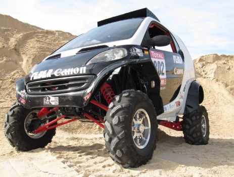 Одна из испанских раллийных команд построила оригинальный багги для участия в ралли-рейде «Дакар». Гоночный болид собран на основе кузова компактного городского автомобиля Smart Fortwo и оснащён 90-сильной силовой установкой, а также трансмиссией от квадроцикла Polaris XP 900.